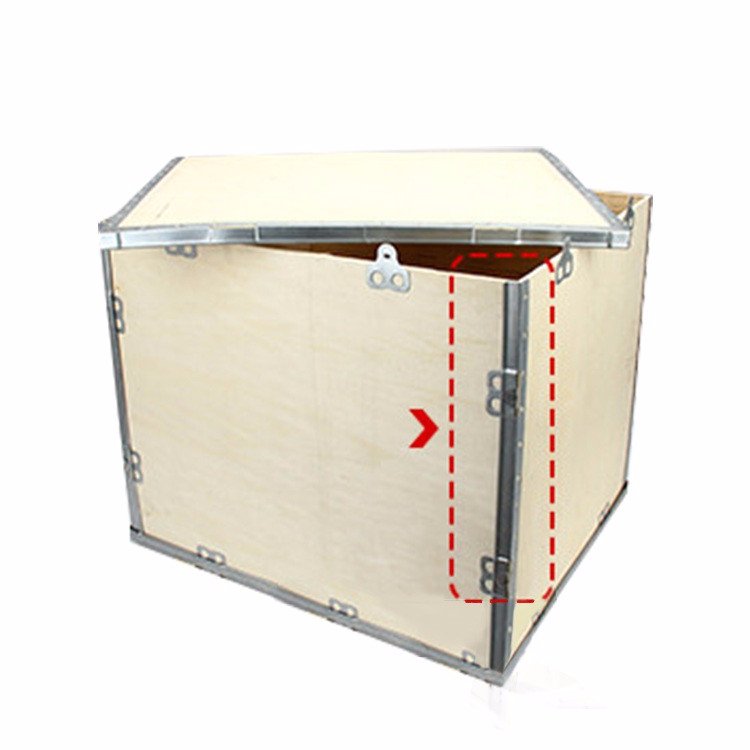 钢边箱又名:快装箱,钢边箱,扣件箱,折叠箱,无钉箱,出口包装箱,胶合板包装箱等。产品具有连接可靠、外形美观、可重复使用、轻量化、便于装卸等一系列优点,钢带箱在国外被广泛使用,常用于出口产品的包装。 钢带箱是由六面组合式,指通过钢边和胶合板的压合形成包装箱的六个面,其中顶盖和底面采用全围钢边结构,其他四面采用钢边和舌型扣结构。组装时先把立的四面和底插接在一起,之后合盖。